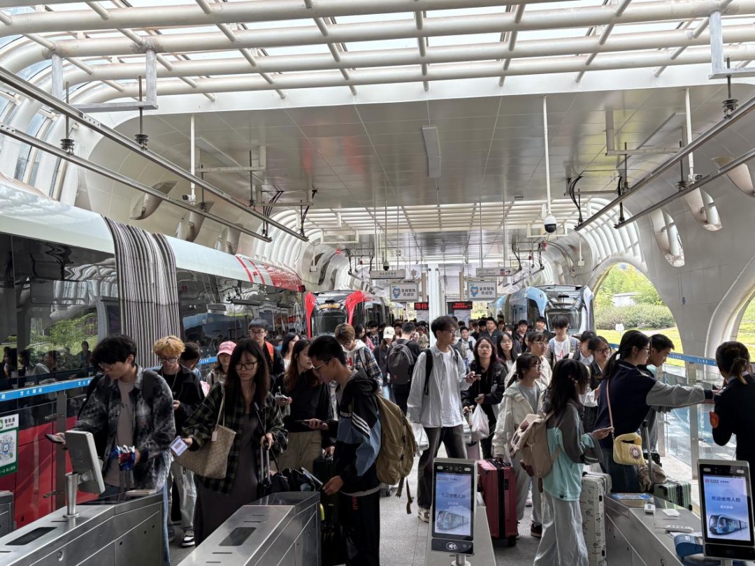 2024年國慶假期(9月30日-10月7日),蜀道宜賓智軌迎來客流高峰,連續8天累計運送乘客超28萬人次,單日最高客流超4萬人次,突破歷史記錄。