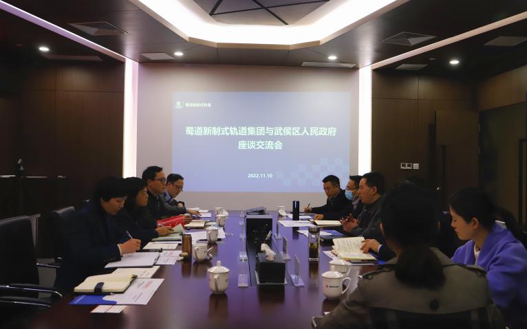 11月10日,蜀道新制式軌道集團黨委書記、董事長韓瑀萱與成都市武侯區人民政府副區長劉莉一行就加強政企合作等事宜進行座談交流。蜀道新制式軌道集團黨委副書記、職工董事、工會主席龍潛,黨委委員、財務總監尚宗飛參加座談。