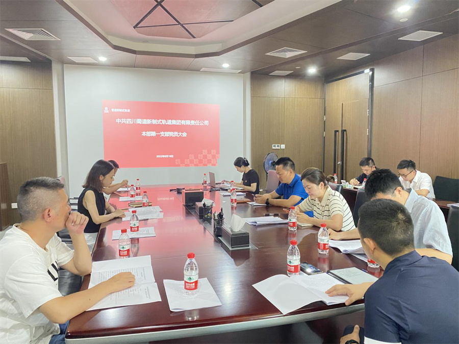 2022年8月18日,蜀道新制式軌道集團本部第一黨支部召開黨員大會,討論了預備黨員擬吸收人選相關事宜,傳達學習了韓瑀萱董事長、張瑞英總經理在蜀道新制式軌道集團傳達貫徹省委工作會議、省政府第十次全體會議精神推進會暨2022年上半年項目投資建設促進會、上半年生產經營分析會、安委會第三季度(擴大)會議上的講話精神,觀看了廉潔警示教育片《鏡鑒》,匯編并印發了《本部第一黨支部學習資料》。