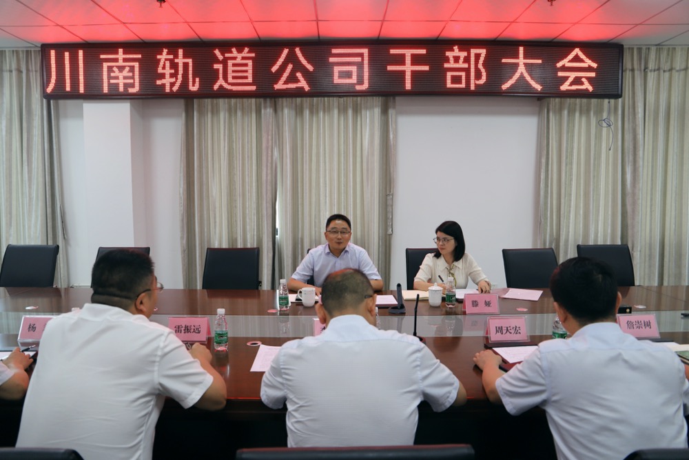 6月22日,川南軌道公司召開干部大會。蜀道新制式軌道集團黨委副書記、職工董事、工會主席龍潛,黨委工作部(人力資源部、宣傳部)副部長滕婭出席會議。川南軌道公司黨總支書記、董事長、總經理李樹培主持會議。