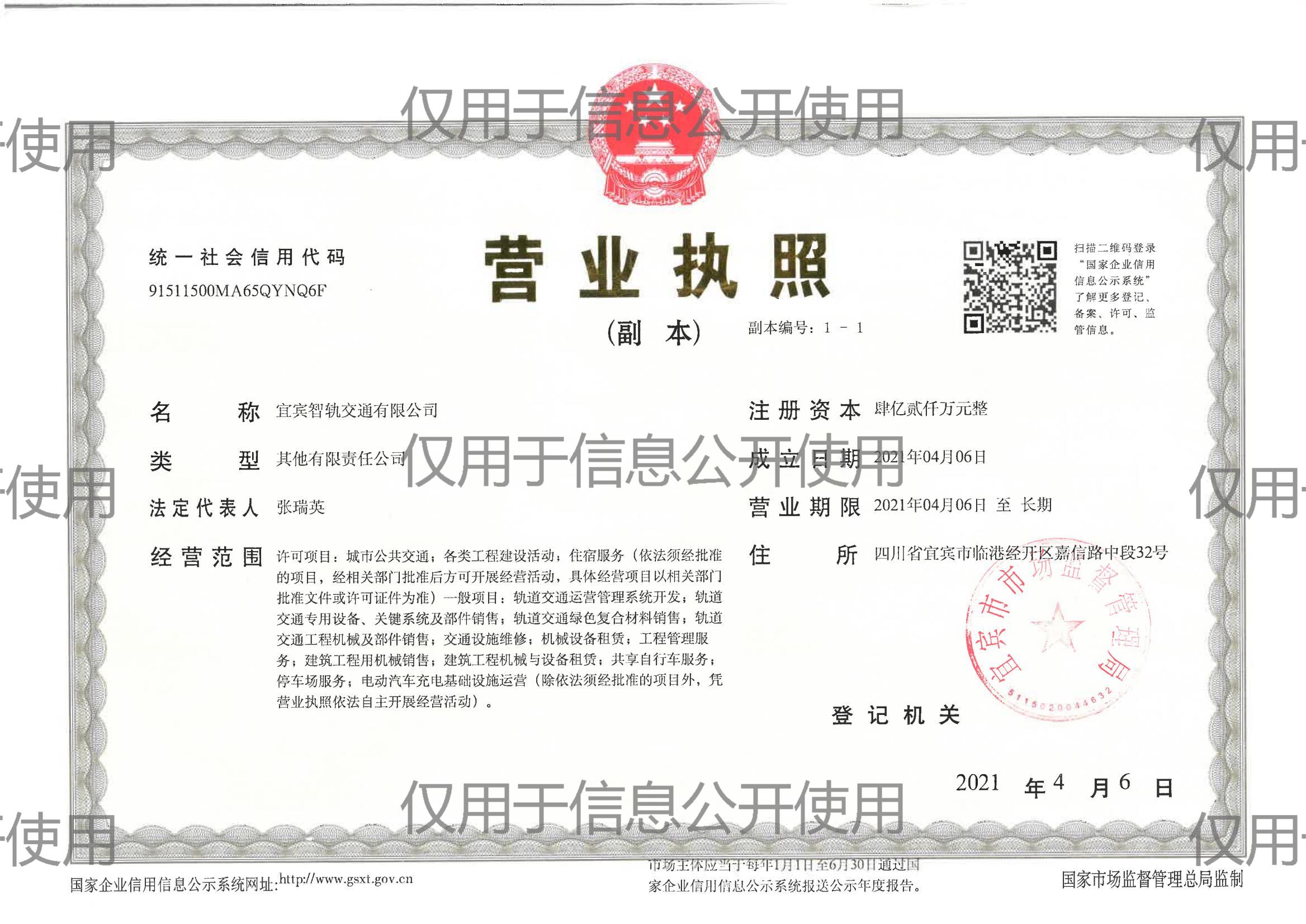 2021年4月6日,宜賓智軌交通有限公司注冊成立。